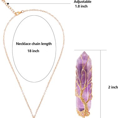 • Healing Crystal Necklace Tree of Life Wire Wrapped Natural Stone Point Pendant Necklace Hexagonal Reiki Spiritual Quartz Gemstone Jewelry for Women Men